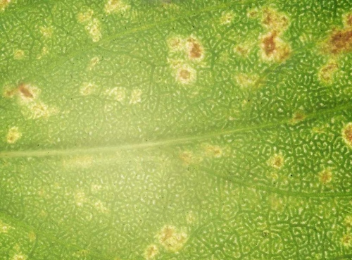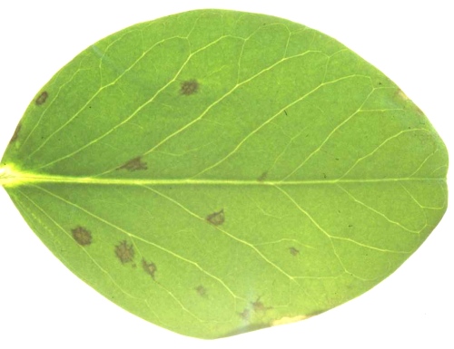 Chlorotic local lesions (Fig. 1) becoming necrotic; infection sometimes partially systemic.- Pisum sativum (pea). Necrotic local lesions