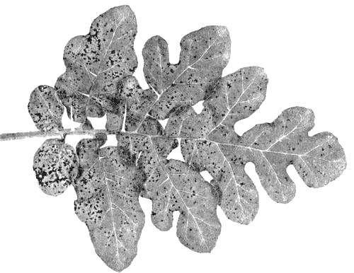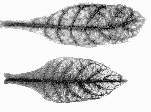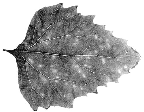 - Solanum rostratum. Numerous small necrotic local lesions about 20 days after inoculation. Systemically infected leaves show similar symptoms (Fig. 4).