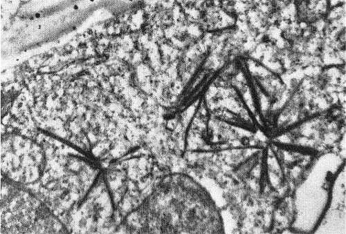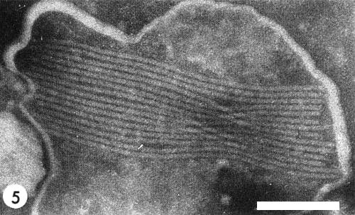 The raised and roughened chlorotic surfaces of infected narcissus leaves result from the abnormal division and growth of parenchyma cells which eventually rupture the overlying epidermis (Caldwell & James, 1938). Cremer & van der Veken (1964) found virus throughout the cytoplasm, but not within the nuclei, of all narcissus tissues; they also found numerous pinwheel inclusions (Fig. 6) within infected cells, but were unable to confirm earlier reports (McWhorter, 1935; Caldwell & James, 1938) of amoeboid intracellular inclusions.