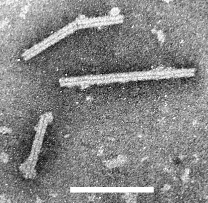 Particles are stiff rods (Fig. 1), appearing hollow, like those of tobacco mosaic and tobacco rattle viruses, when negatively stained. The diameter is about 20 nm. The most frequent length is 150-160 nm (Tsuchizaki et al. (1970) reported 110-120 nm for some Japanese isolates), but many are about 300 nm long (Brakke et al., 1965; Brandes, Phillipe & Thornberry, 1964). Some of the particles in preparations of the 300 nm rods appear to be dimers of the 160 nm rods. Such preparations are infective, but preparations of 160 nm rods are not (Gumpf, 1971).