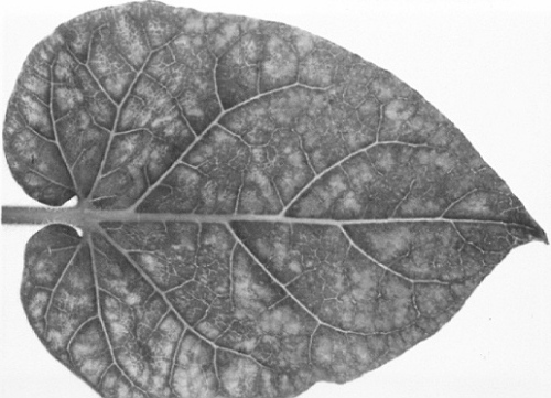 - Nicotiana glutinosa. Light green mottle with dark green vein-banding (Fig. 7).