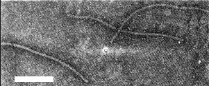 Particles are filamentous, about 580 nm long and 11 nm wide (Fig. 8). They often aggregate end-to-end and side-to-side.