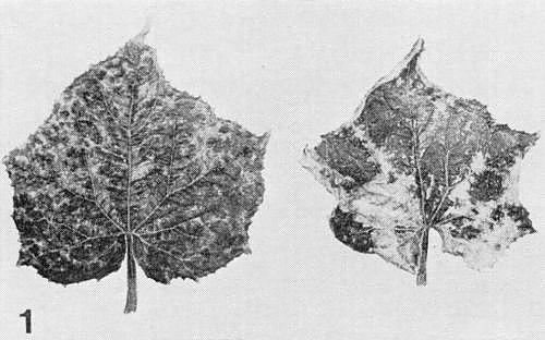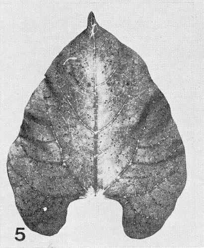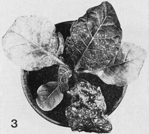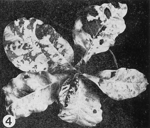 - Phaseolus vulgaris (French bean). In U.K., pin-point necrotic local lesions develop in winter but not in summer; not systemic (Fig. 5).