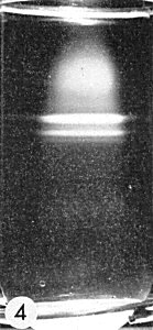 Bands produced in a sucrose density gradient: broad upper band contains short particles; two sharp lower bands contain preponderantly particles 300 nm long and longer aggregates respectively.