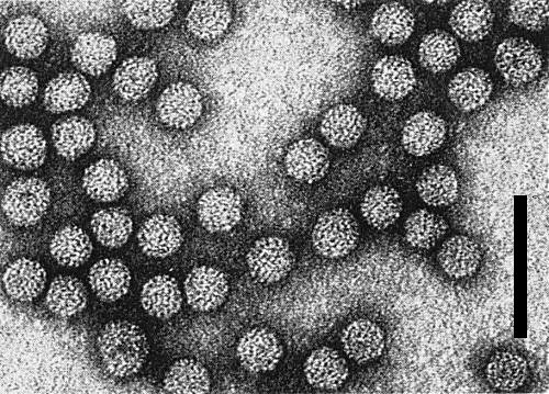 Particles are essentially isometric, with some heterogeneity in size (Fig. 5). Particle diameter correlates positively with the sedimentation rate of the components: c. 24.8 nm (NP 4), c. 26.3 nm (NP 3), c. 31.3 nm (NP 2), and c. 32.2 nm (NP 1) (Gonsalves & Garnsey, 1976). Particles are partially disrupted in phosphotungstic acid unless fixed in formaldehyde.