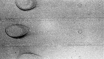 Schlieren patterns obtained by analytical ultracentrifugation comparing purified turnip yellow mosaic (upper) and desmodium yellow mottle (lower) viruses.