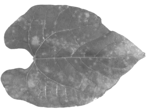 lesions after 7-14 days (Fig. 3). Chlorotic spots, vein clearing,