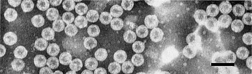 Approximately spherical particles c. 50 nm in diameter (Fig. 6) (Iwaki et al., 1984).
