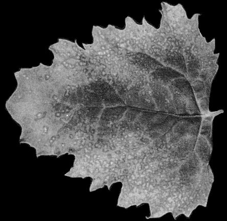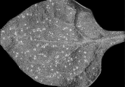 - Tetragonia expansa. Small (1 mm) chlorotic etched lesions in inoculated leaves after 16-20 days (Fig. 3). No systemic infection.