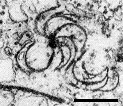 Pinwheel inclusions, and bundles of virus particles (Fig. 4, Fig. 5), were found by electron microscopy of sections of ryegrass leaf parenchyma cells (M. James, unpublished).