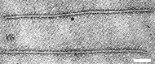 Particles are filamentous, 12-13 nm wide and helically constructed, their length and appearance depending on the conditions of extraction (Govier & Woods, 1971). When magnesium ions are absent, the particles are flexuous and have a normal length of about 800 nm (Fig. 7), but when magnesium is present, the particles are straight or only slightly flexuous and have a normal length of about 900 nm (Fig. 8).